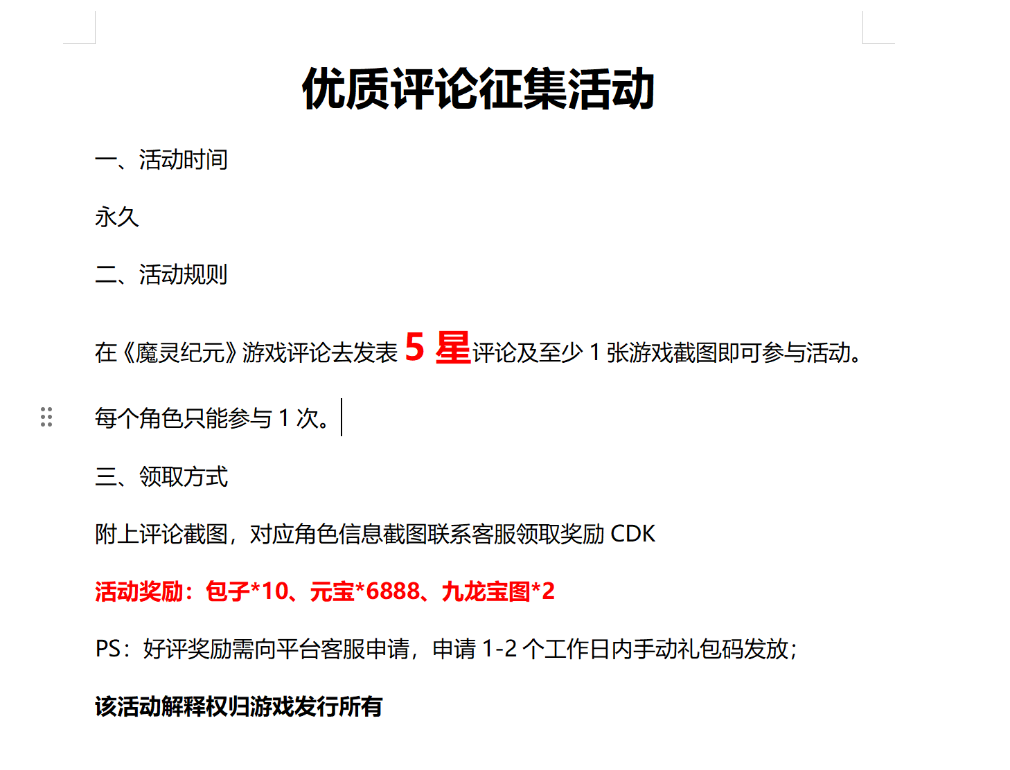 优质评论征集活动