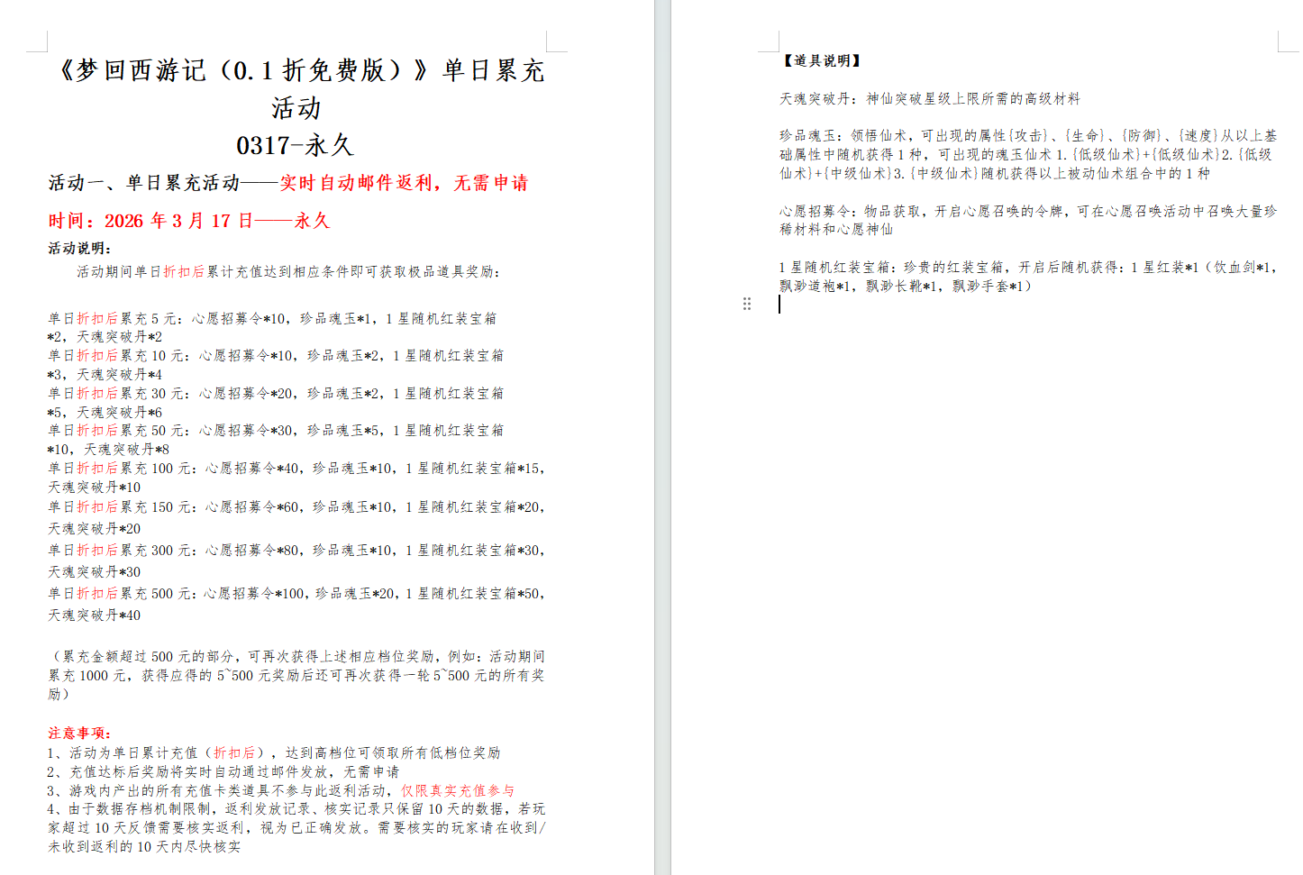首发限时多日累充